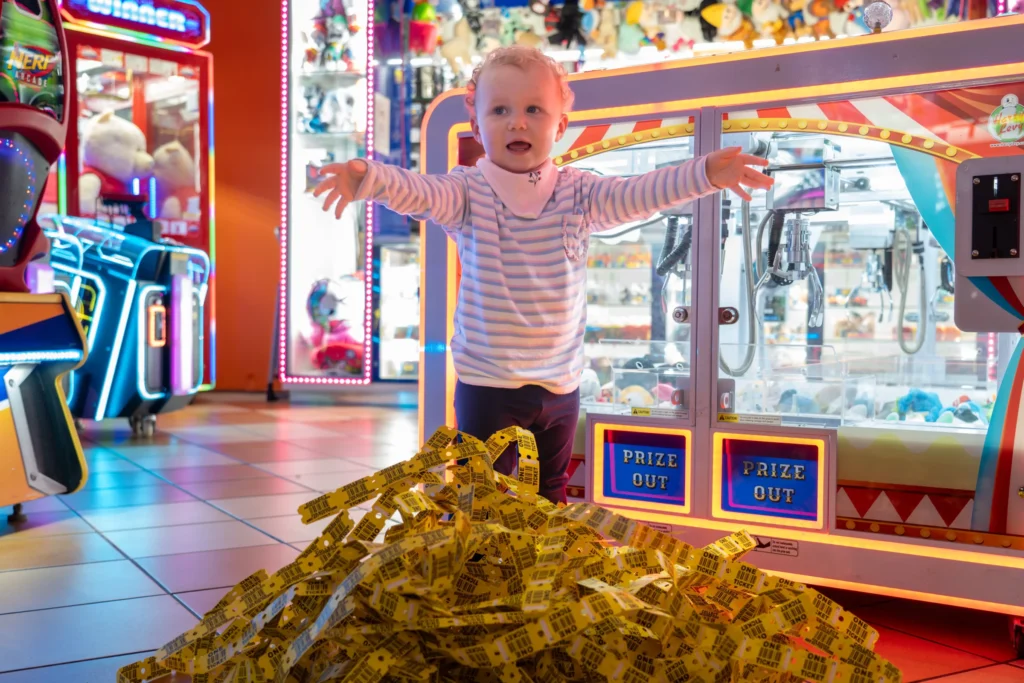 All of our Arcade machines accept €1 coins and our new Cashless Tap-Card system will be functional very soon.